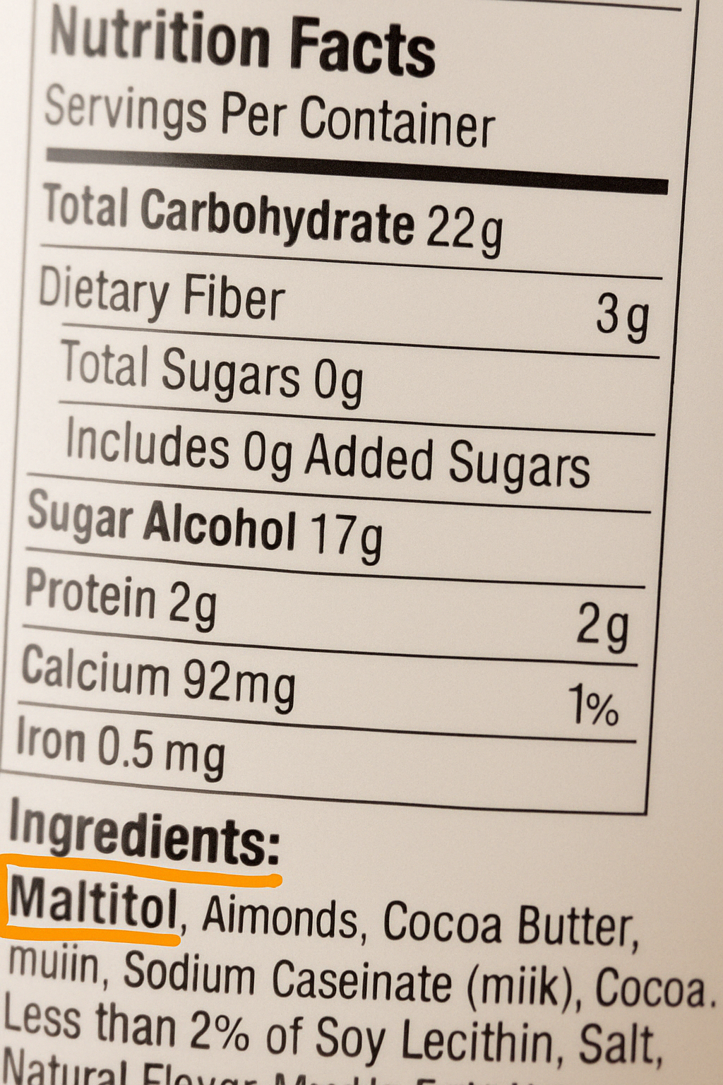 성분표에서 maltitol, erythritol, xylitol 등 당알코올 종류를 확인하세요!