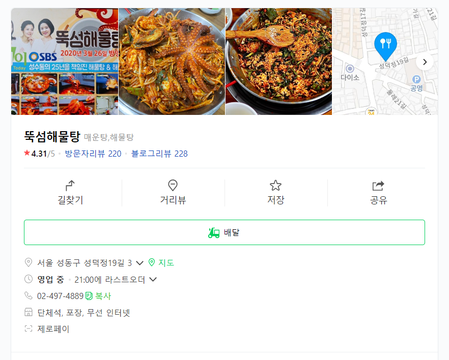 상호명은 뚝섬해물탕입니다.