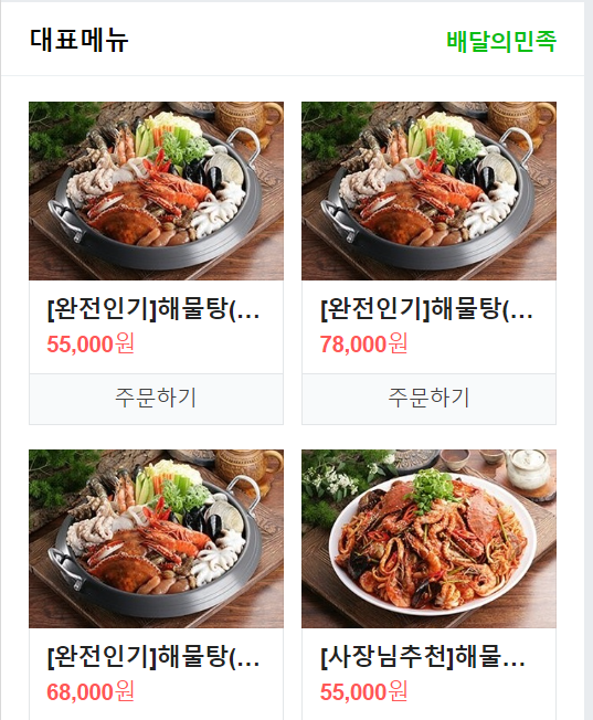 가격은 해물탕 소자 55,000 중자 68,000 대자 78,000원이구요