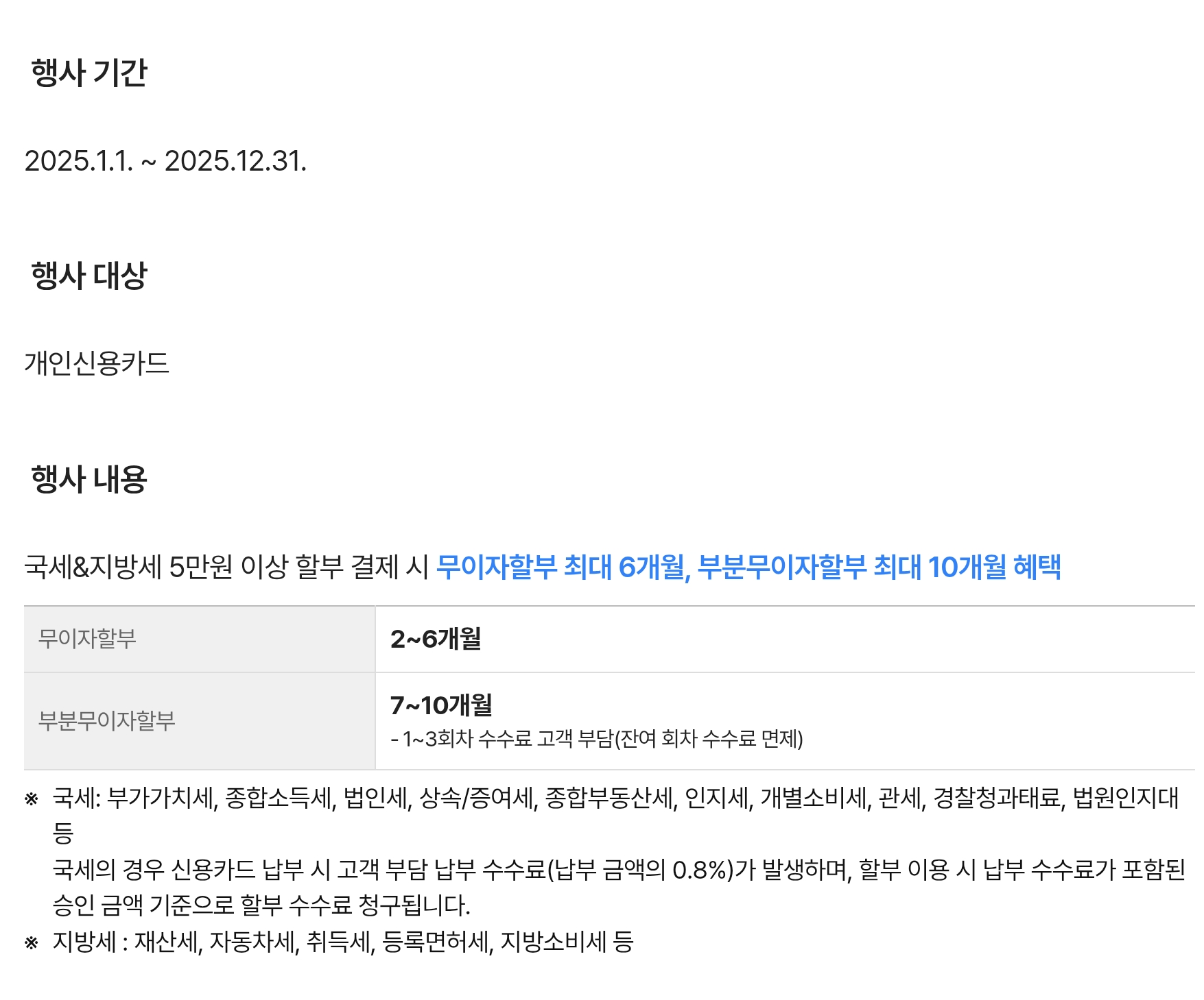 현대카드: 6·10·12개월 부분 무이자