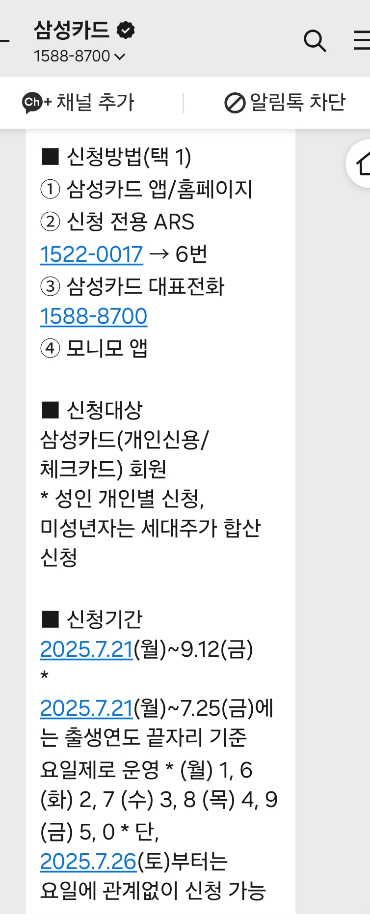 지금 바로 카드사 홈페이지나 민생지원금 누리집에서 신청하세요.